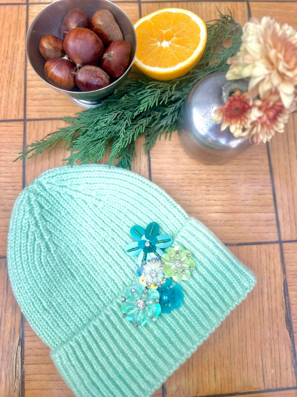 %80 acrylıc- %20 yün iplik karışımlı, örme bere.